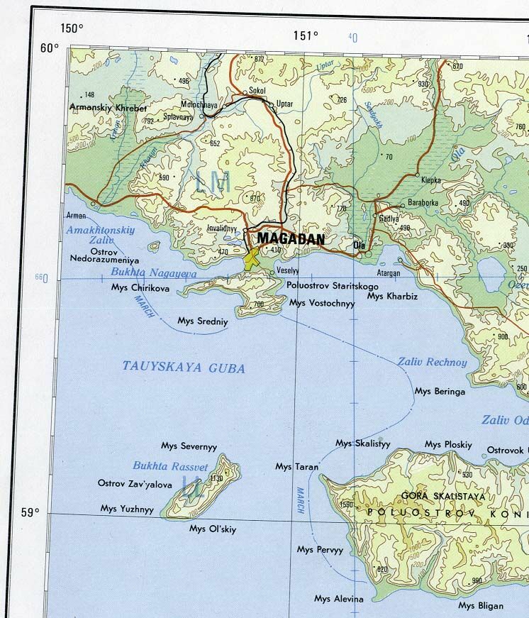 Peninsula. The tide slack, the brilliant Okhost Sea in all its vast and